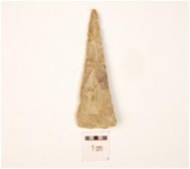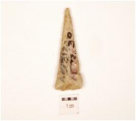 | Description / विवरण | Arrowhead made of chert, triangular in shape and retouched edges. |