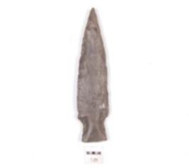 | Description / विवरण | A triangular bifacial arrowhead made of chert, projectile point, tanged and retouched edges. |