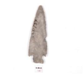 | Description / विवरण | A triangular bifacial arrowhead made of chert, projectile point, barbed, tanged and retouched edges. |