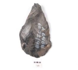 | Description / विवरण | Arrowhead made of chert, leaf-shaped and retouched on both surfaces.Flake marks are clearly visible on its surface. |