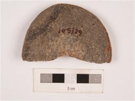 | Description / विवरण | Fragment of a basalt mace-head with polished surface. |