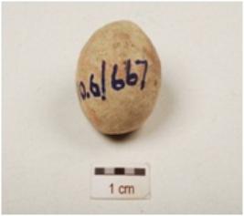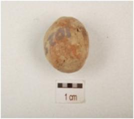 | Description / विवरण | A hand made sling ball made on terracotta round in shape, well baked, circular in section, surface treated with wash in dull red colour. |