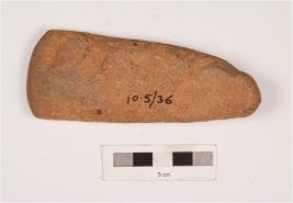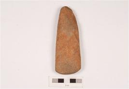 | Description / विवरण | A pointed butt basalt ground axe with sharp edge and polished surface. |