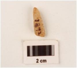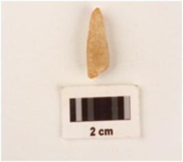 | Description / विवरण | Flake made by quartz proximal end pointed irregular shape. Rough surface. |