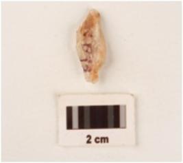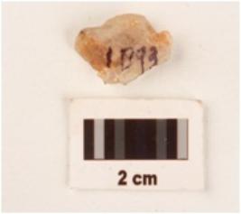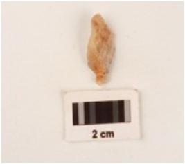 | Description / विवरण | Flake made by quartz proximal end is broken pistal end is working dorsal side uneven bulb absent. |