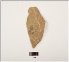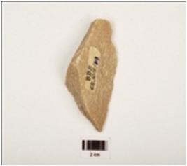 | Description / विवरण | An utilized flake made on end struck quartzite flake, flake scars on both sides, use wear marks on cutting edges, biconvex in section. |