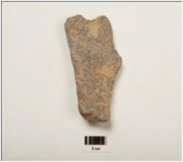 | Description / विवरण | A scraper made on basalt end struck flake, bulb absent, retouched along the cutting edge, flat at one end, flake scars on dorsal surface, triangular in section. |
