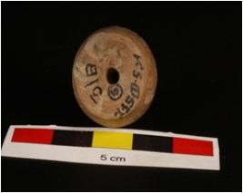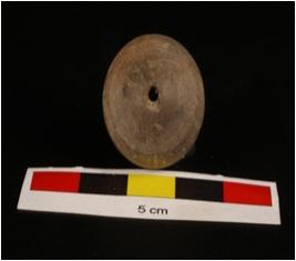 | Description / विवरण | Rubbing stone, made of sandstone, round shape and rubbing marks on surface. |