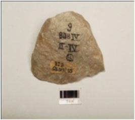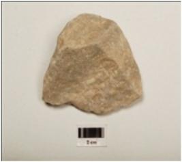 | Description / विवरण | A cleaver made on quartzite side struck flake, unprepared platform, bulb on ventral surface, straight broad cutting edge, flake scars on dorsal surface, triangular in section. |