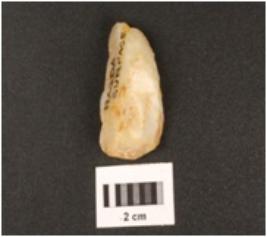 | Description / विवरण | A chalcedony flake, prepared platform and cortex visible. |