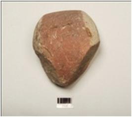 | Description / विवरण | A hammer stone made on quartzite, pebble, rounded at both ends, polished surface, pitting marks on surface, broken at one end and surface, biconvex in section. |