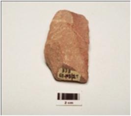 | Description / विवरण | A bifacial scraper made an end struck quartzite flake, prepared platform, flake scars on surface, regular retouches along the working edge. |
