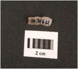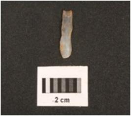 | Description / विवरण | Fragment of chalcedony blade with use-wear marks on cutting edges, diffused bulb on ventral side and mid-ridge on dorsal side. |