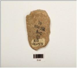 | Description / विवरण | A flake on quartzite bulb absent, use ware mark on cutting edge, flake scars on surfaces. |