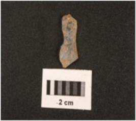 | Description / विवरण | Fragment of chalcedony blade with use-wear marks on cutting edges and prominent bulb on ventral end. |