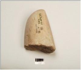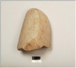 | Description / विवरण | A fragment of muller made on quartzite, pebble, flat base pitting marks on flat base, rounded at one end, broken at other end, plano convex in section. |