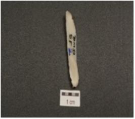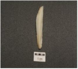 | Description / विवरण | A blade made of chalcedony, prepared platform, diffused bulb on ventral and use wear marks along the cutting edges. |