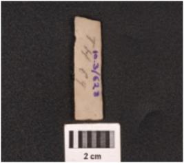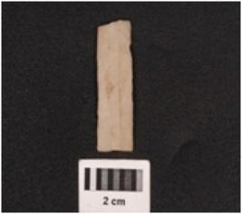 | Description / विवरण | A parallel sided blade made of chert with a ridge on the dorsal surface, cutting edges intact and triangular in section. |
