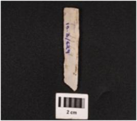 | Description / विवरण | A parallel sided blade made of chert with ridges on the dorsal side, use-ware marks on the cutting edges, broken at the proximal end and trapezoidal in section. |
