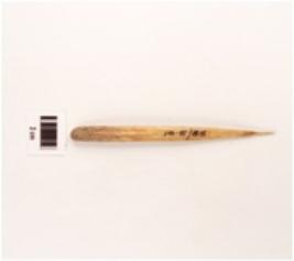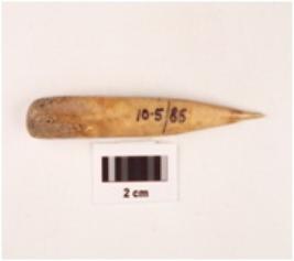 | Description / विवरण | Bone point, intact, very sharp distal end, smooth polished surface. |