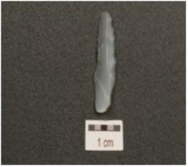 | Description / विवरण | Backed blade made of chalcedony, backed on dorsal along the right edge, irregular retouch along the cutting edge on both sides, diffused bulb on ventral and ridge on dorsal side. |
