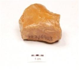 | Description / विवरण | A core made on chert with flake scars round the surface, slightly damaged. |
