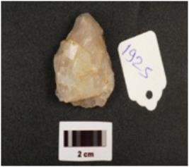 | Description / विवरण | Quartz core with prepared platform, four flake scarcs , use wear mark along cutting edges, |