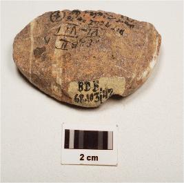 | Description / विवरण | An utilized flake made on side struck quartzite flake, flake scars on both sides, use wear marks on cutting edges. |