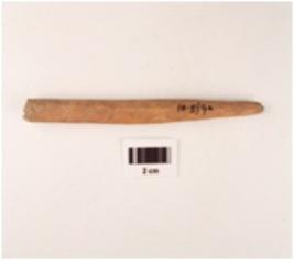 | Description / विवरण | Bone point, proximal end broken, pointed end is broken, rough surface. |