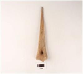 | Description / विवरण | Bone point, slightly broken point, perforation on proximal end, slightly rough surface. |