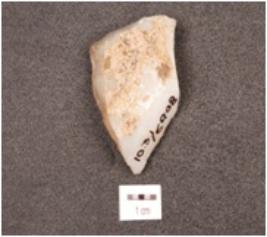 | Description / विवरण | A flake made on chalcedony with pointed end, roughly triangular shaped. |