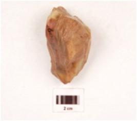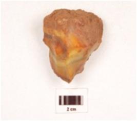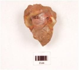 | Description / विवरण | A modified core made on agate with flake scars on the surface, visible ripple marks, traces of cortex on the exterior. |
