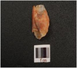 | Description / विवरण | Quartz flake, diffused bulb on ventral side, usewear marks along cutting edges, |