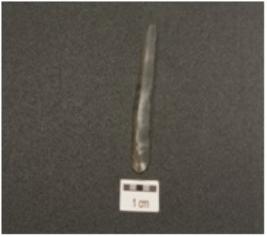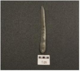 | Description / विवरण | A blade, made of chalcedony, prepared platfom, diffused bulb on ventral use-wear marks along the cutting edge and ridge on dorsal side. |