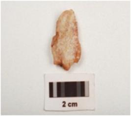| Description / विवरण | Quartz flake,diffused bulb on ventral side, usewear marks along cutting edges, |