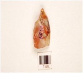 | Description / विवरण | Quartz flake with prepared platform, diffused bulb on ventral side, usewear marks along cutting edges, |