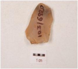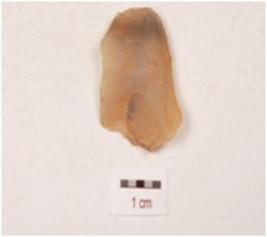 | Description / विवरण | A small blade core with three flake scars on the surface, made on chalcedony, cortex on the surface. |