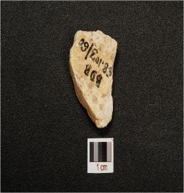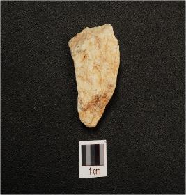 | Description / विवरण | A flake made on quartzite flake, triangular in shape, prepared platform flake scars on surface, rough surface. |
