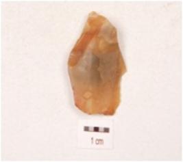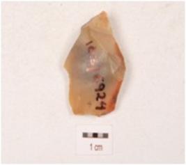 | Description / विवरण | A scraper made on chalcedony with flake scars on the dorsal surface, irregular round the cutting edge, and visible ripple marks. |