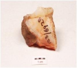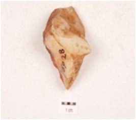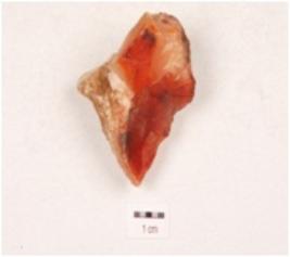 | Description / विवरण | A flaked core made on chalcedony with flake scars on the surface with cortex, and ripple marks slightly damaged. |