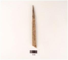 | Description / विवरण | Bone point, proximal end broken, pointed distal end, rough surface. |
