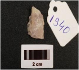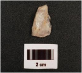| Description / विवरण | Quartz flake with prepared platform, diffused bulb on ventral side, usewear marks along cutting edges, |