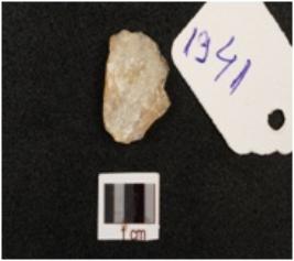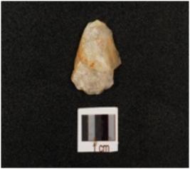 | Description / विवरण | Quartz flake with prepared platform, diffused bulb on ventral side, usewear marks along cutting edges, |