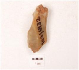 | Description / विवरण | A flaked core made on chert with flake scars around the surface with ripple marks, cortex on one end. |