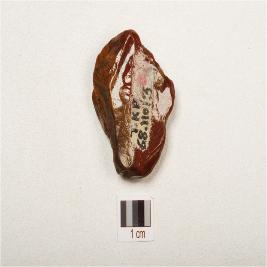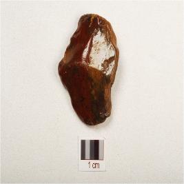 | Description / विवरण | A scraper made on chert flake with smooth surface, triangular in section and irregular retouches on working edge. |