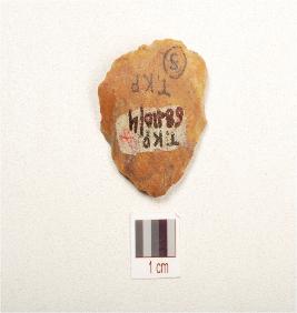 | Description / विवरण | A scraper made on chert end struck flake with ripple marks on dorsal striking platform, triangular in section and irregular retouches on working edge. |