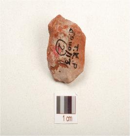 | Description / विवरण | A core made on chert with three blade scars on surface, prepared platform and use wear marks on edge. |