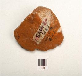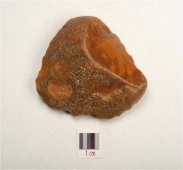 | Description / विवरण | An end scraper made on chert side struck flake with striking platform diffused bulb on ventral flake scars on dorsal and irregular retouches on working edge, lenticular in section. |