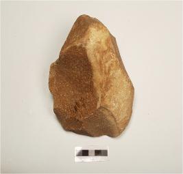 | Description / विवरण | A chopping tool made on quartzite pebble, flake scars on both sides, cortex on both sides, cortex on posterior butt end, sharp cutting edge an anterior end. |