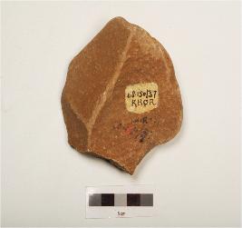 | Description / विवरण | A scraper made an end struck quartzite flake, flake scars on both ends broken on pointed end, plano convex in section. |